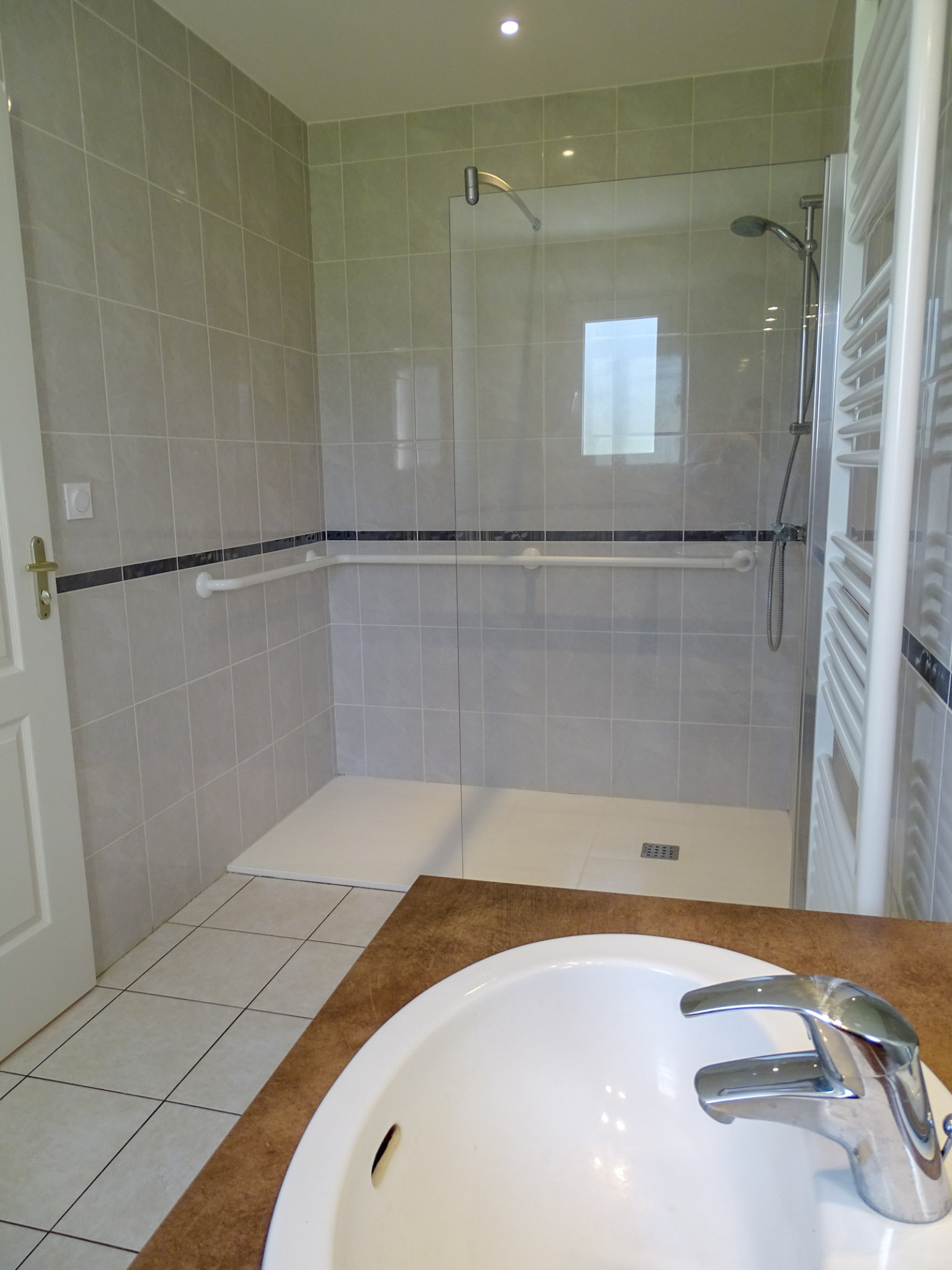 Son rez-de-chaussée se compose d'une cuisine aménagée et spacieuse, une pièce de vie agrémentée d'un poêle à bois et donnant sur la véranda, une chambre, une salle d'eau avec sa douche italienne, wc, un coin buanderie et un garage.
