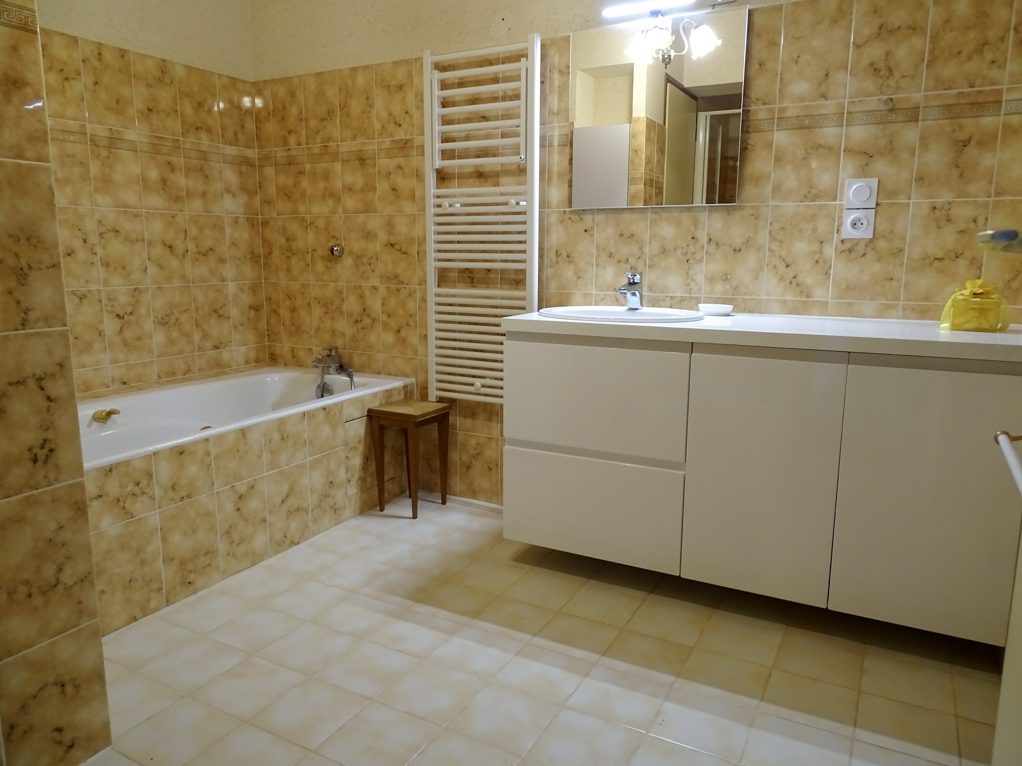 Dès l’entrée, un hall avec placards vous accueille et donne accès à une cuisine aménagée, spacieuse et fonctionnelle, ainsi qu’à une arrière-cuisine pratique pour le quotidien. La pièce de vie, véritable cœur de la maison, offre 44 m² d’espace convivial avec une cheminée ouverte et un accès direct à une terrasse ensoleillée, idéale pour vos moments de détente.