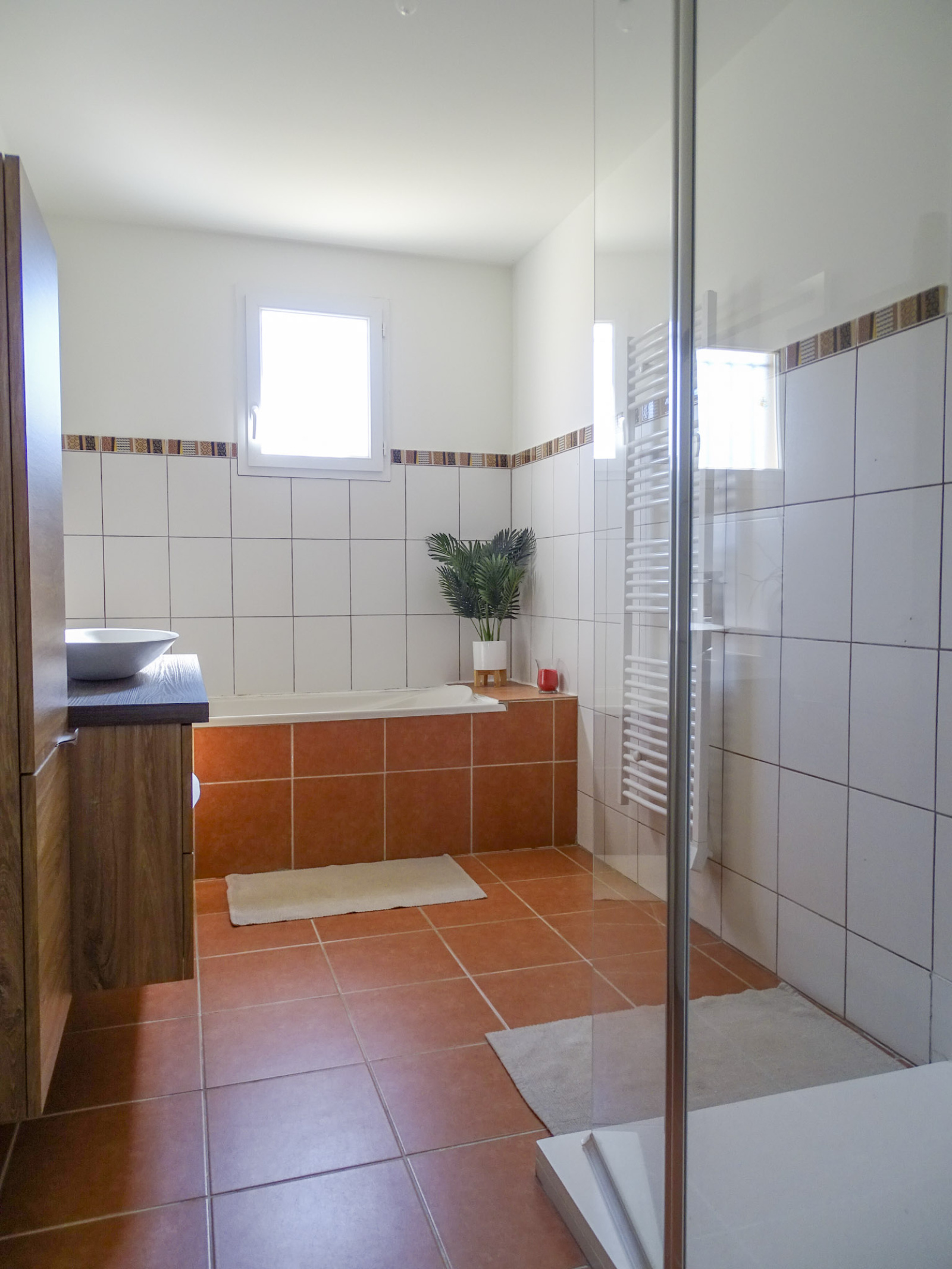 Cette maison familiale se compose d'un espace cuisine aménagé et semi-équipé ouvert sur une pièce de vie avec baie coulissante donnant sur une agréable terrasse, 3 chambres dont une avec dressing, une salle de bain avec baignoire et douche italienne.