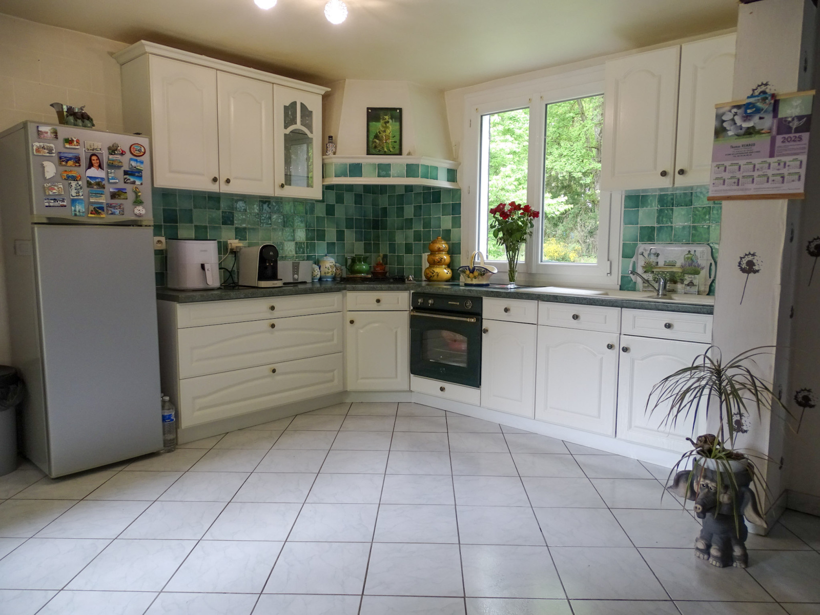À l’extérieur, un vaste parc arboré de 3 935 m² s’étend autour de la maison, véritable écrin de verdure pour profiter des saisons en toute quiétude. Un garage attenant complète ce bien.
