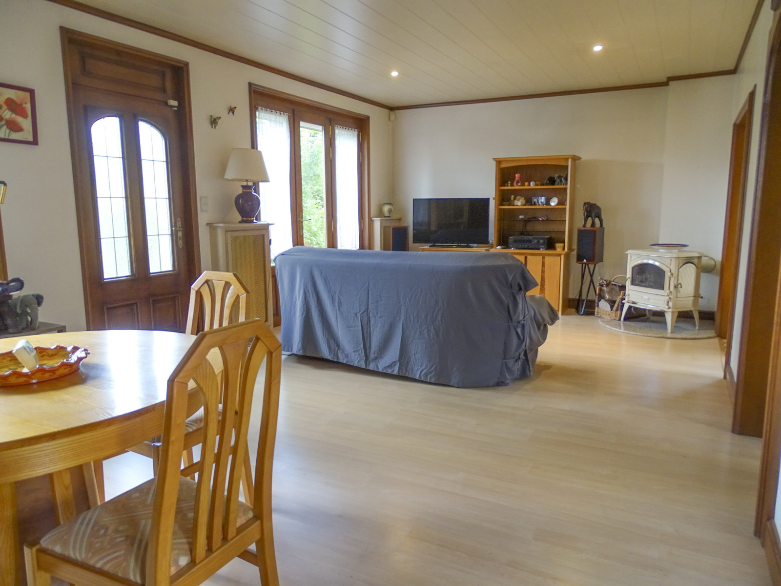 L'espace intérieur de 116m² se compose d'une cuisine ouverte aménagée, une pièce de vie lumineuse,un salon, 4 chambres et une salle d'eau.