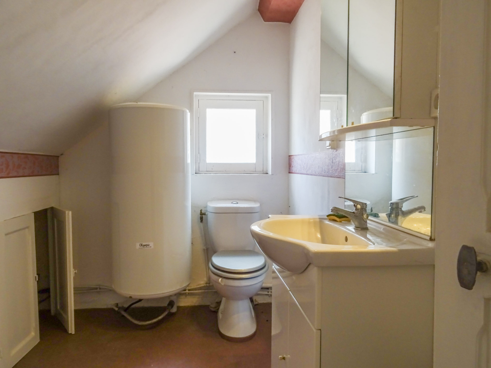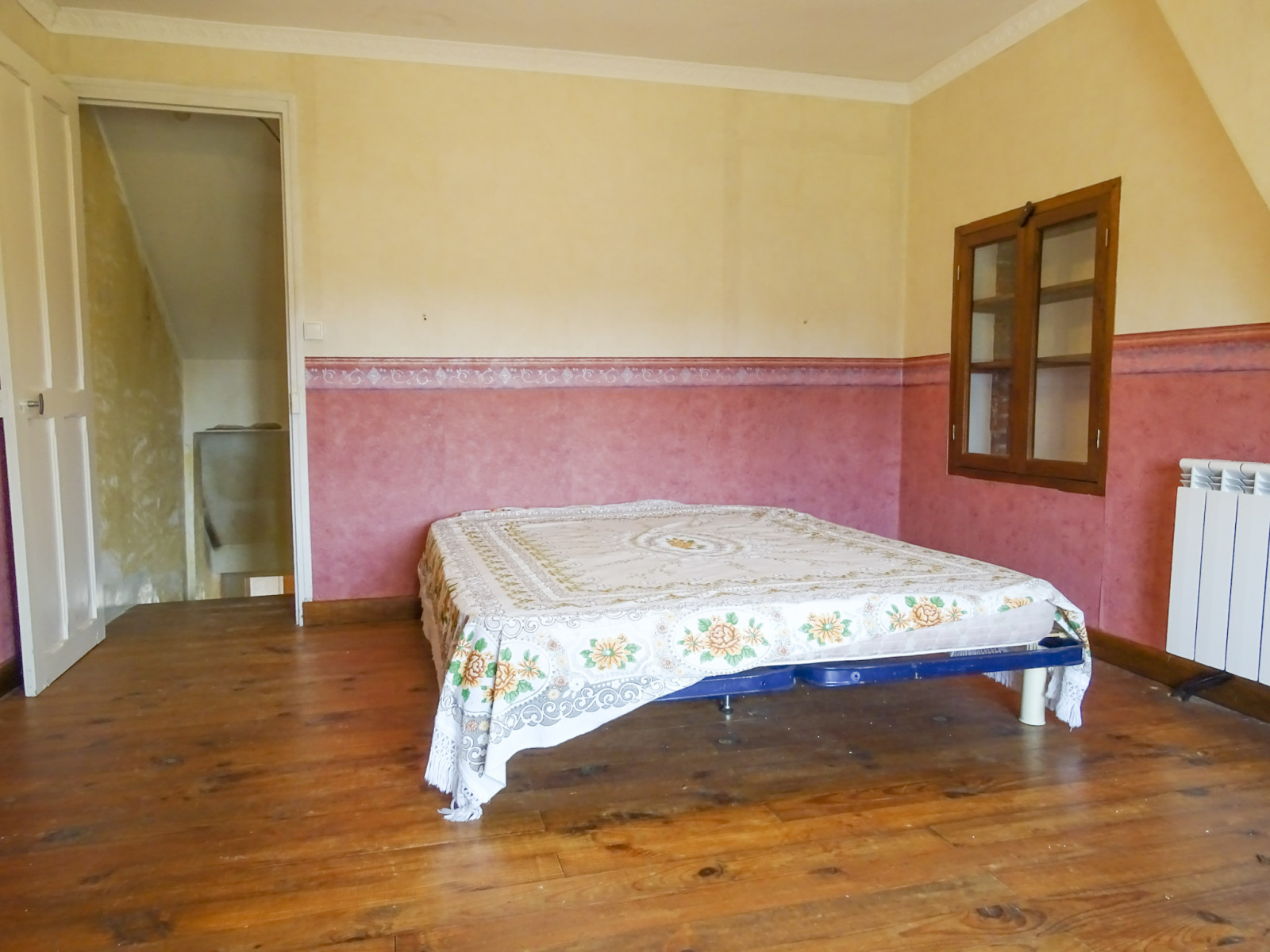 A l'étage : une chambre avec parquet et cabinet de toilette.