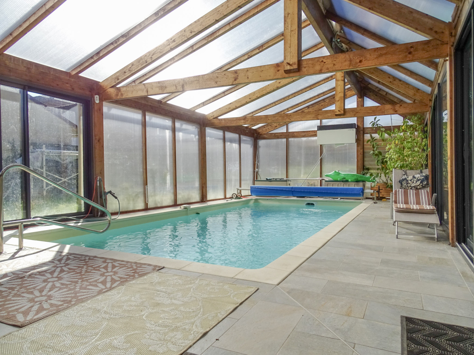 À l’extérieur, place aux loisirs et à la détente : une piscine couverte et chauffée, un double garage avec abri voiture et cave, ainsi qu’un second garage prolongé d’un atelier viennent compléter ce bien rare.