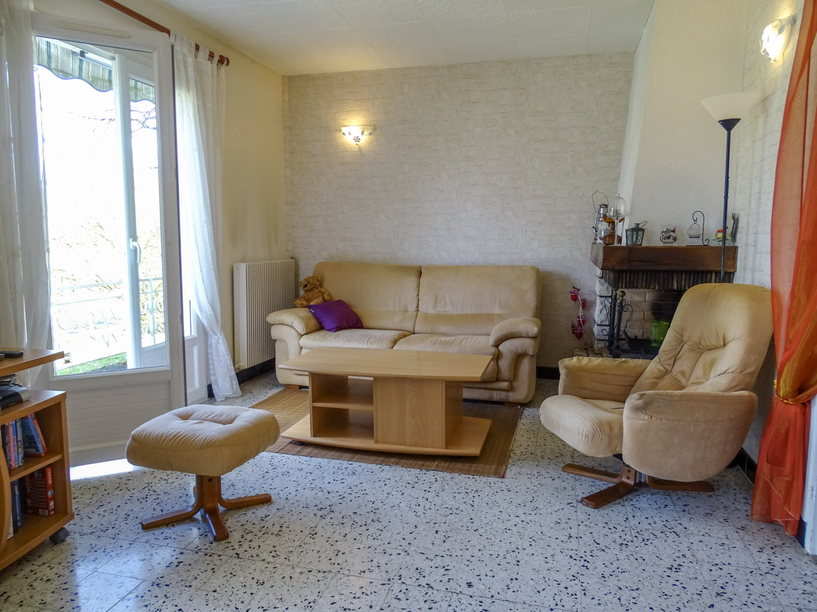 Sa surface habitable de 66m² est composée d'une entrée, une cuisine semi aménagée et équipée, une chaleureuse pièce de vie avec sa cheminée d'agrément, 2 chambres, une salle d'eau agrémentée d'une douche italienne et d'une vasque sur meuble et wc séparés.