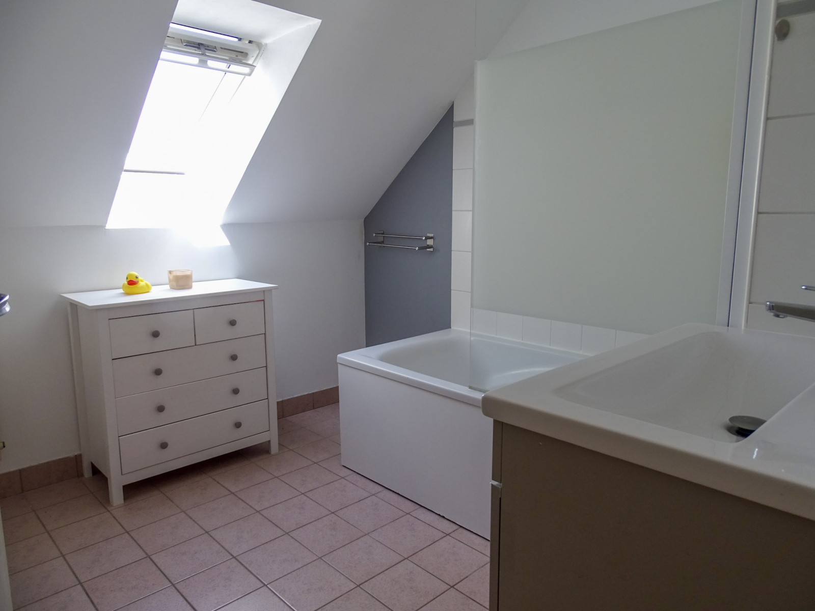 Dès l’entrée, vous découvrirez un hall avec placard offrant un espace de rangement pratique, une cuisine aménagée ouverte sur une agréable pièce de vie, baignée de lumière grâce à ses portes-fenêtres donnant sur la terrasse.