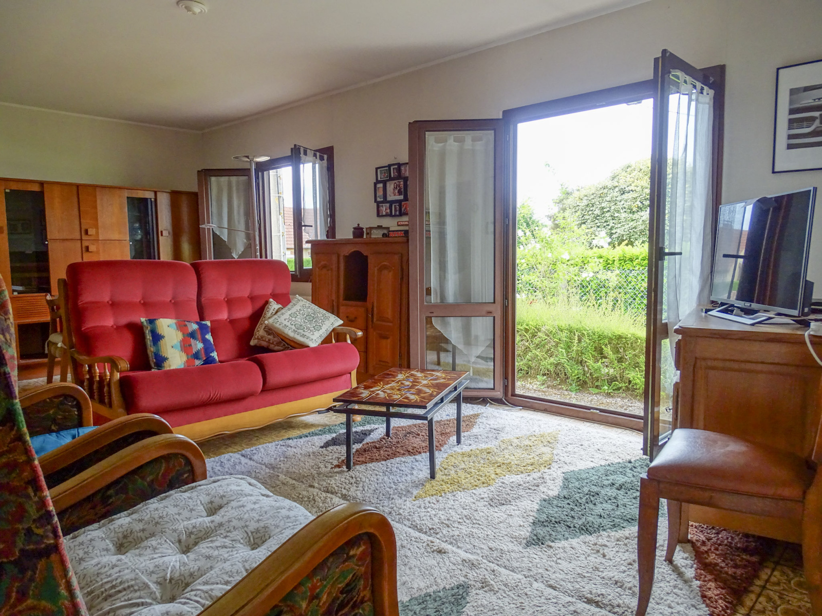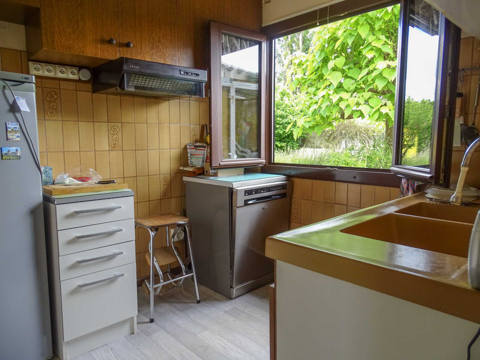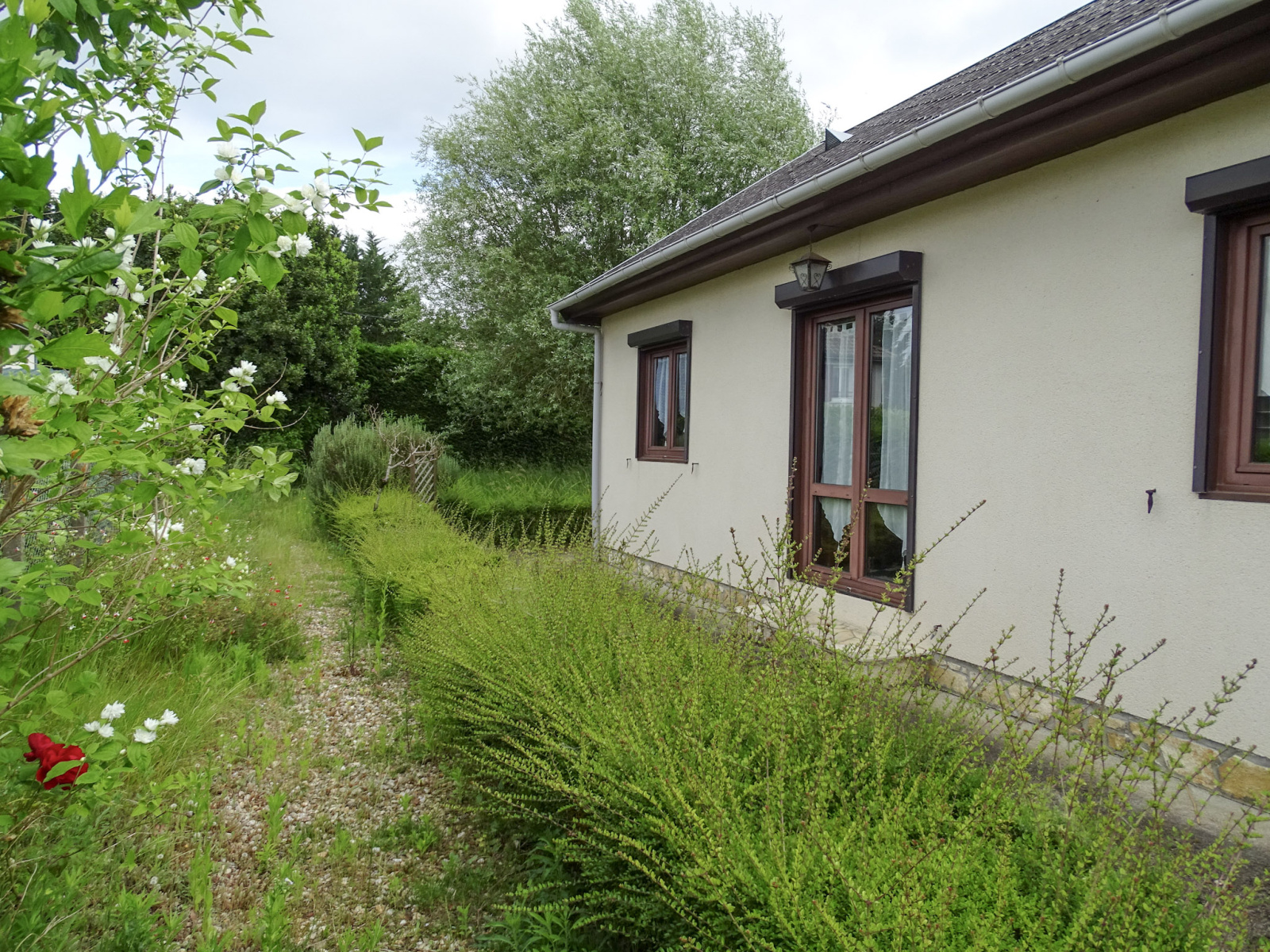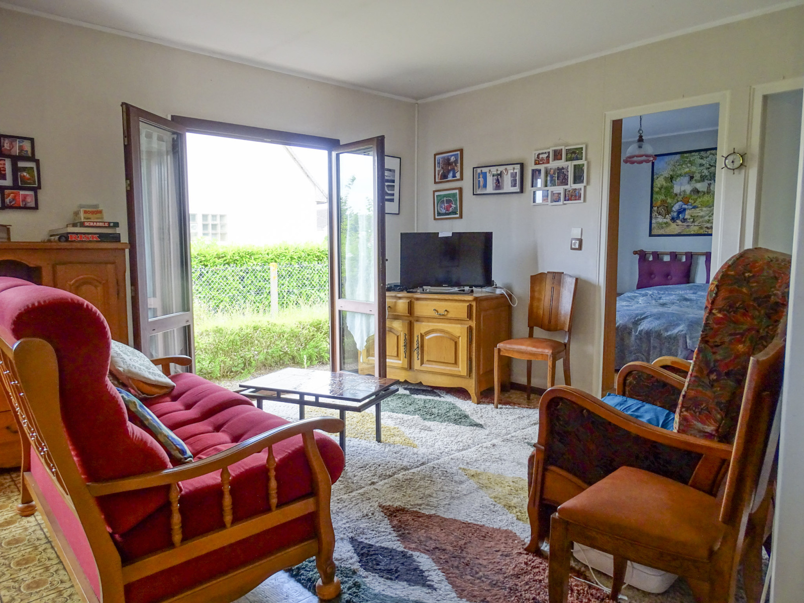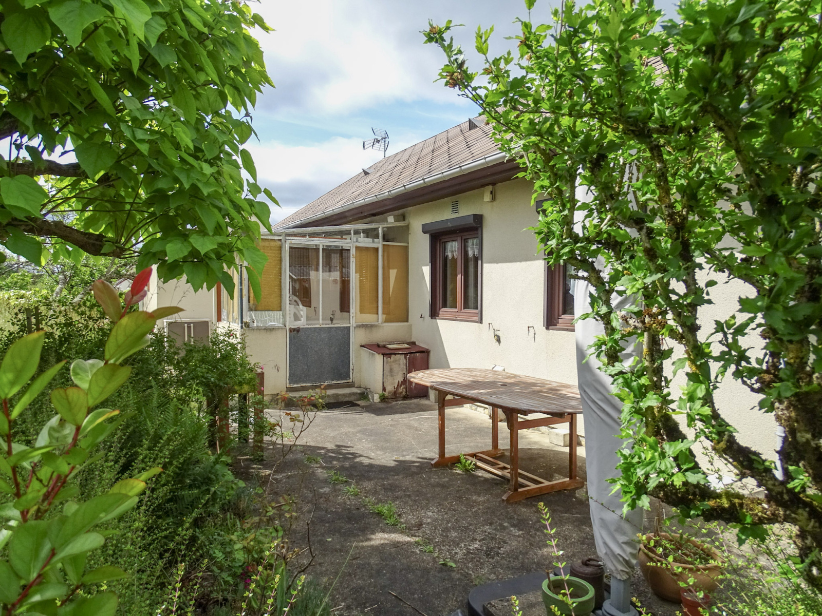 La maison se compose d’une véranda lumineuse, d’un espace cuisine aménagé, et d’une pièce de vie chaleureuse ouvrant directement sur le jardin, parfaite pour profiter d’une belle lumière naturelle au quotidien.